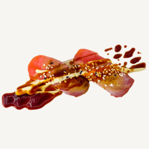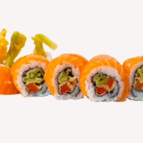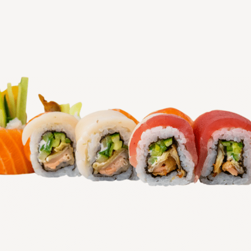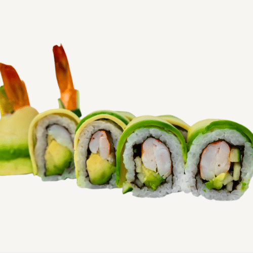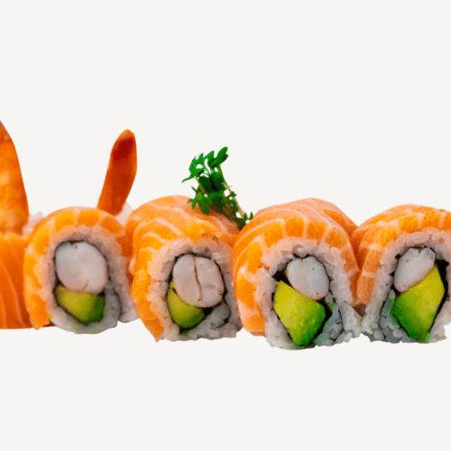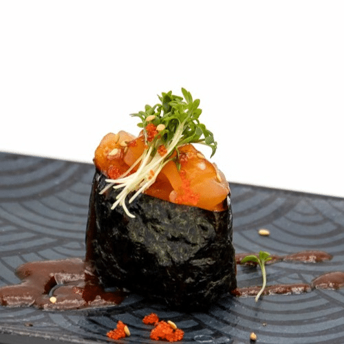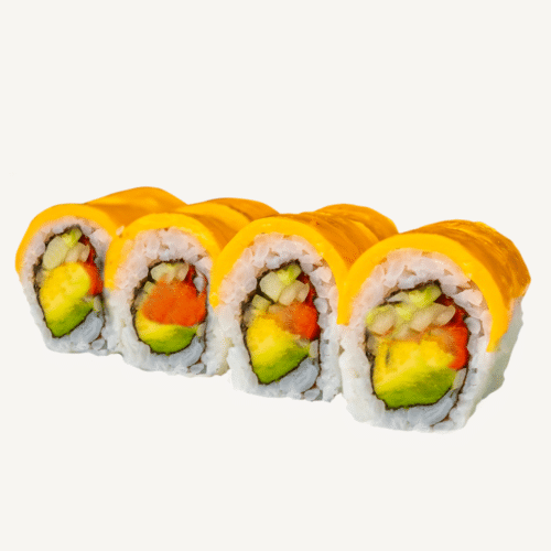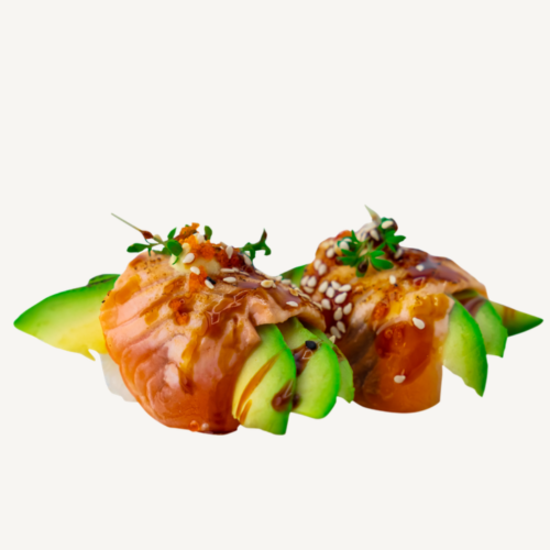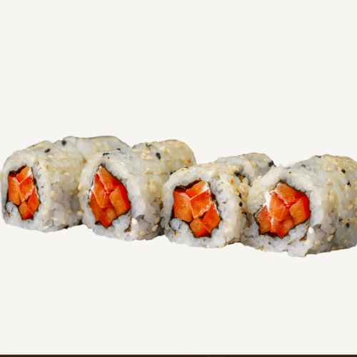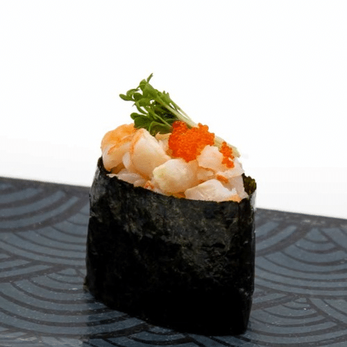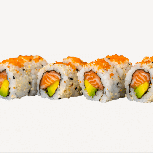 mit Hummerkrabbenfleisch, Mayonnaise, Tobiko, Avocado, Lachs und Spezialsauce