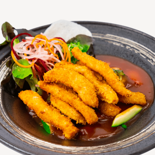 mit Kakiage-Gemüse Tempura, süßem Tofu, Sesam und Spezialsauce
