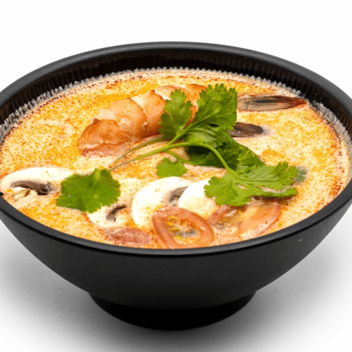 mit Champignons, Tomaten, Koriander, Kokosmilchfond und einer Zutat nach Wahl