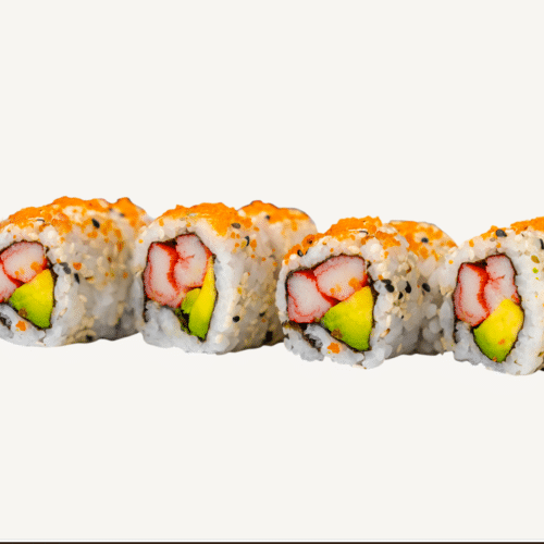 mit Surimi, Avocado, Fischrogen, Mayonnaise und Sesam