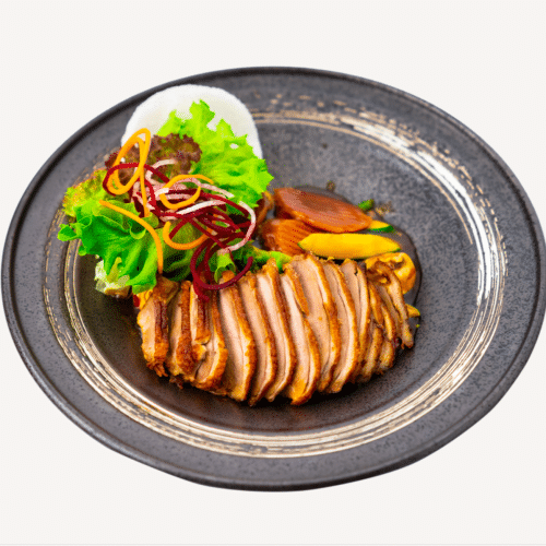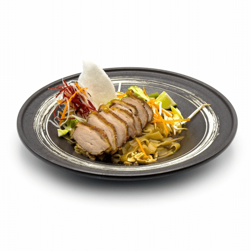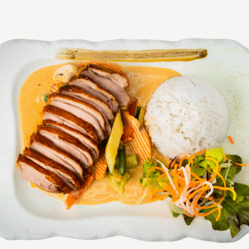 mit knuspriger Entenbrust nach Art des Hauses und einer Sauce nach Wahl