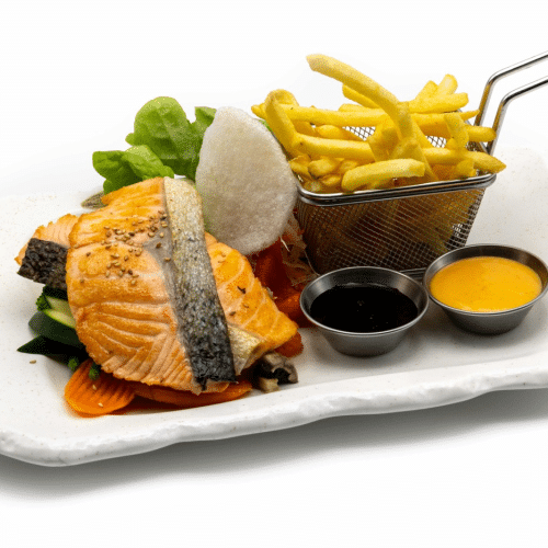 knuspriges Lachsfilet mit Sweet-Chili-Dip