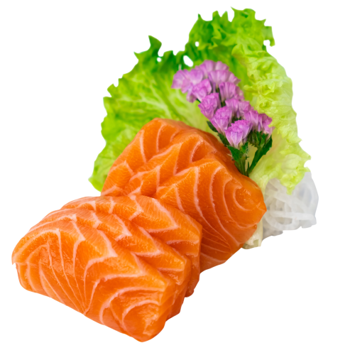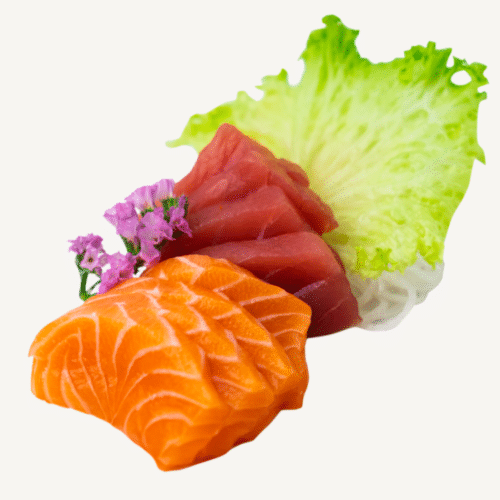 mit Gemüse-Tempura, Lachs Carpaccio, Spezialsauce, Kresse und Rettich