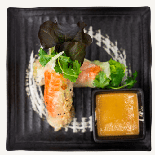 hausgemachte vietnamesische Frühlingsrollen mit Soja-Limetten-Vinaigrette und einer Zutat nach Wahl