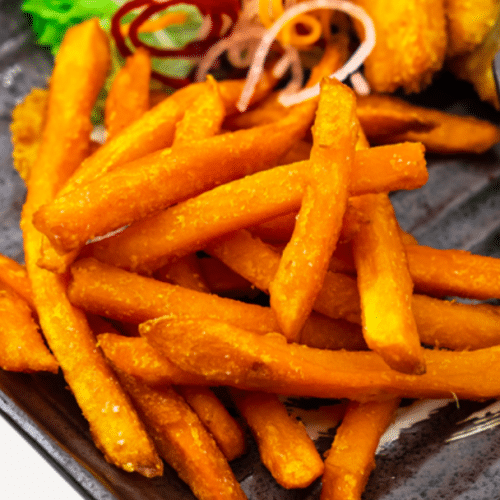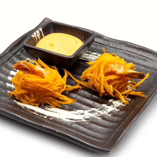 knusprige gebackene Garnelen im Süßkartoffelmantel mit Cocktailsauce