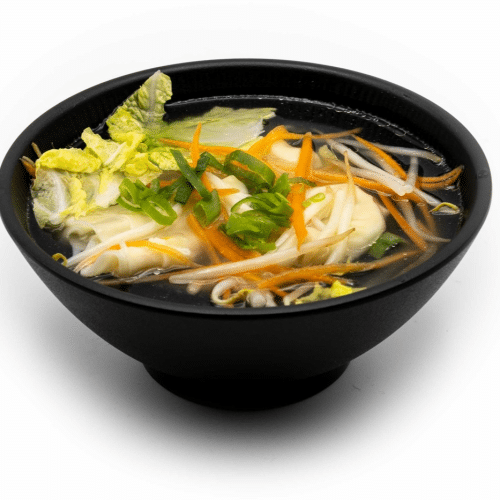 gefüllte Teigtaschen mit Hühnerfleisch, in klarer Brühe